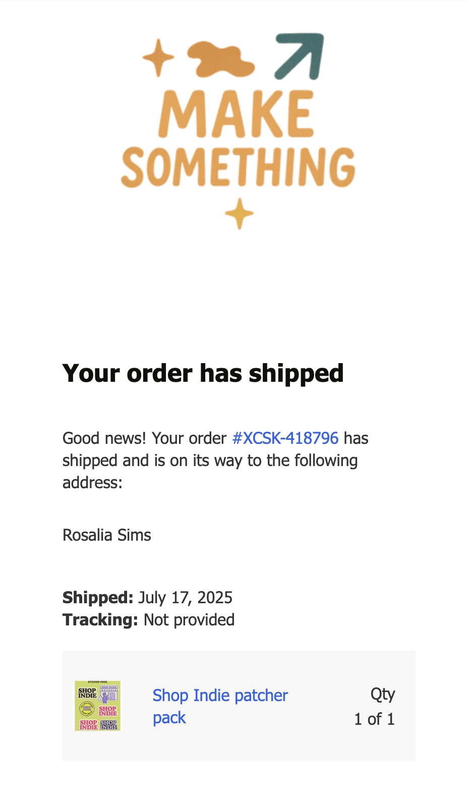 Notification emails will automatically match your branding, too - including your shop's header or logo image if you've got one uploaded in your theme.