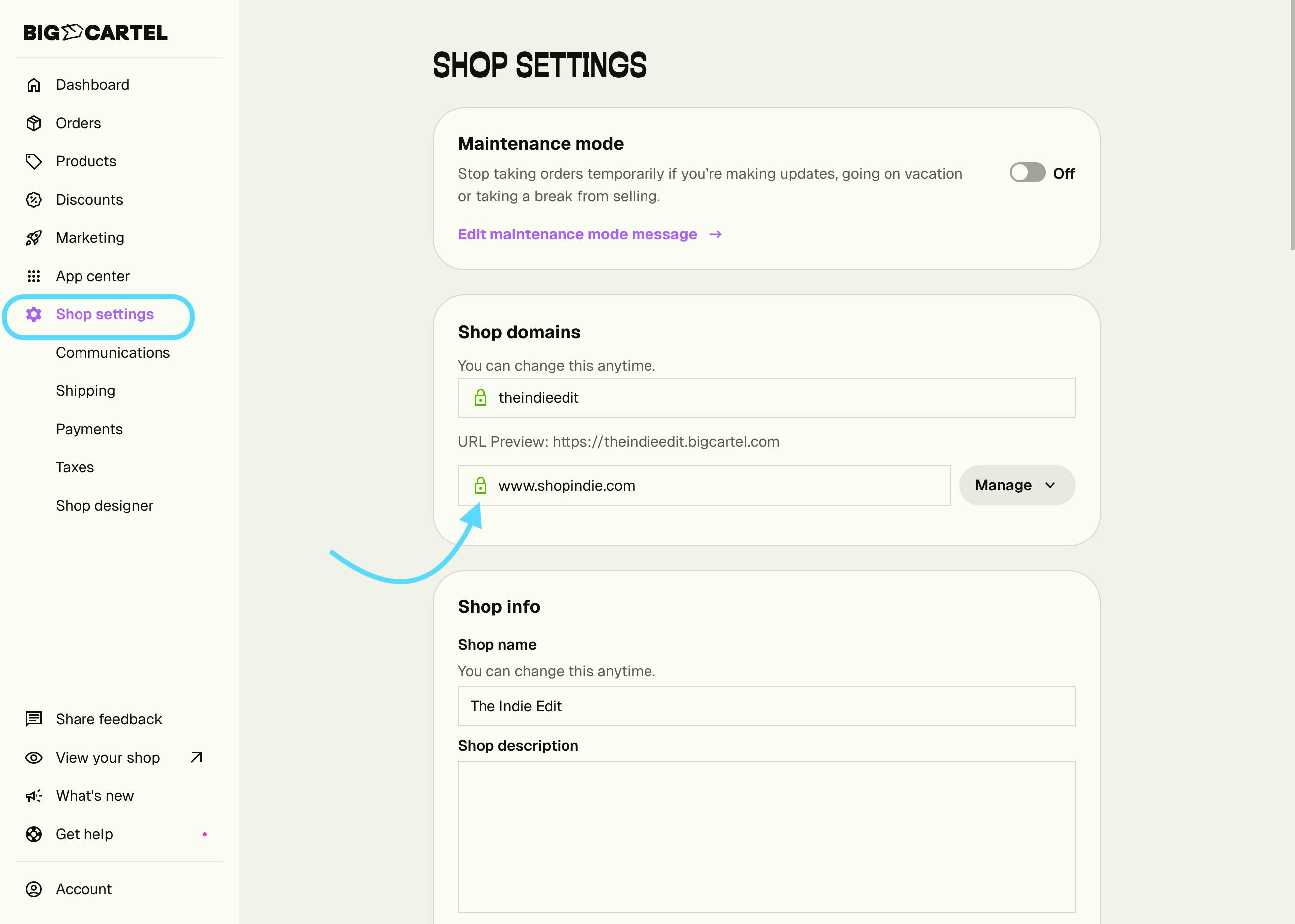 On the Shop settings page of your admin, you'll notice a color-coded lock icon next to your custom domain if you're using one with your shop.