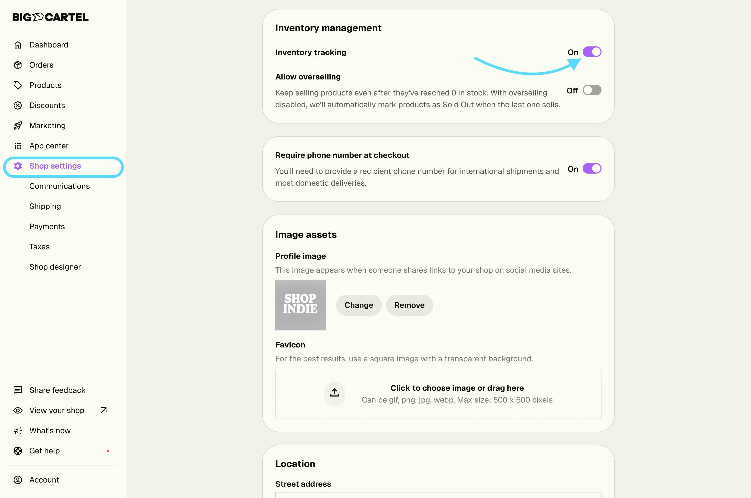 - Toggle on Inventory tracking.